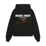 This hoodie features Michael Whsky’s signature oversized fit, designed to fall wide and boxy.