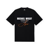 Most Michael Whsky T-shirts are crafted from 100% cotton. For exact fabric compositions, please refer to the individual product descriptions.