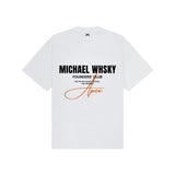 Most Michael Whsky T-shirts are crafted from 100% cotton. For exact fabric compositions, please refer to the individual product descriptions.