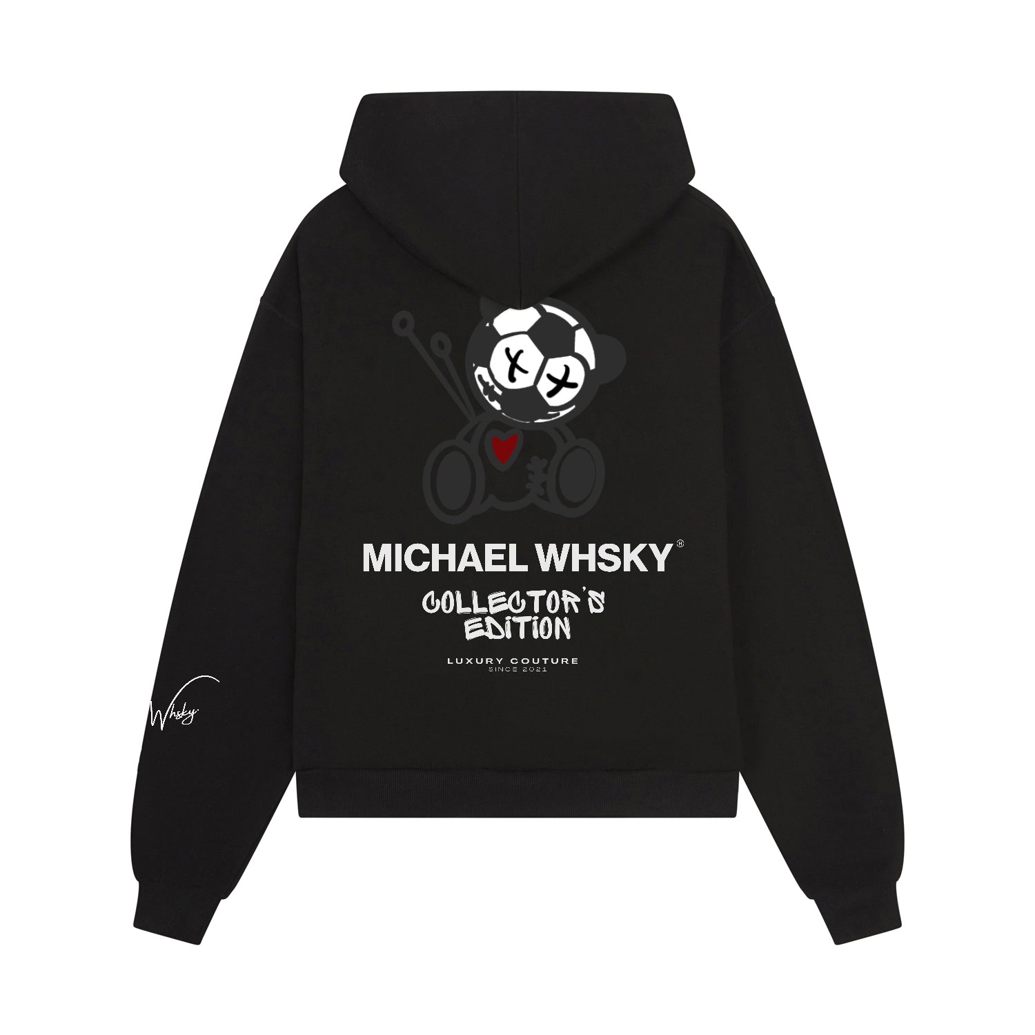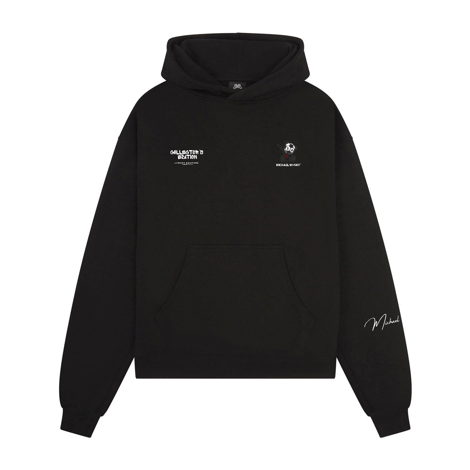 This hoodie features Michael Whsky’s signature oversized fit, designed to fall wide and boxy.