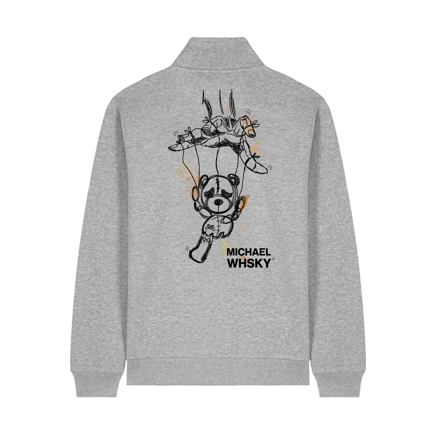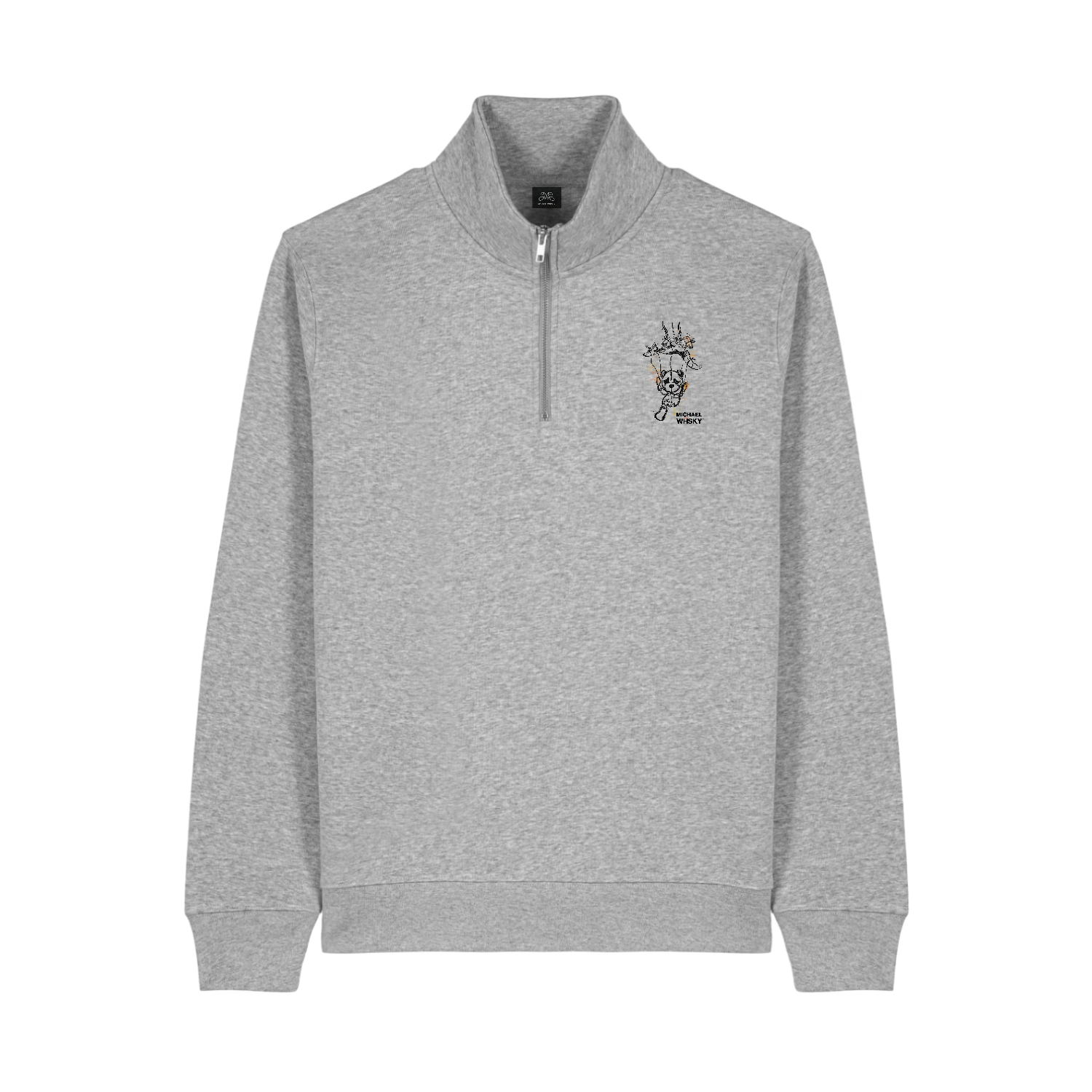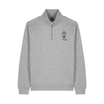 Introducing the Puppet Teddy Half Zip Sweat in heather grey. Relaxed fit crafted from mid-heavyweight 350gsm 80% cotton and 20% recycled polyester anti-pill fleece. Soft fleece inside provides a cozy, warm touch.