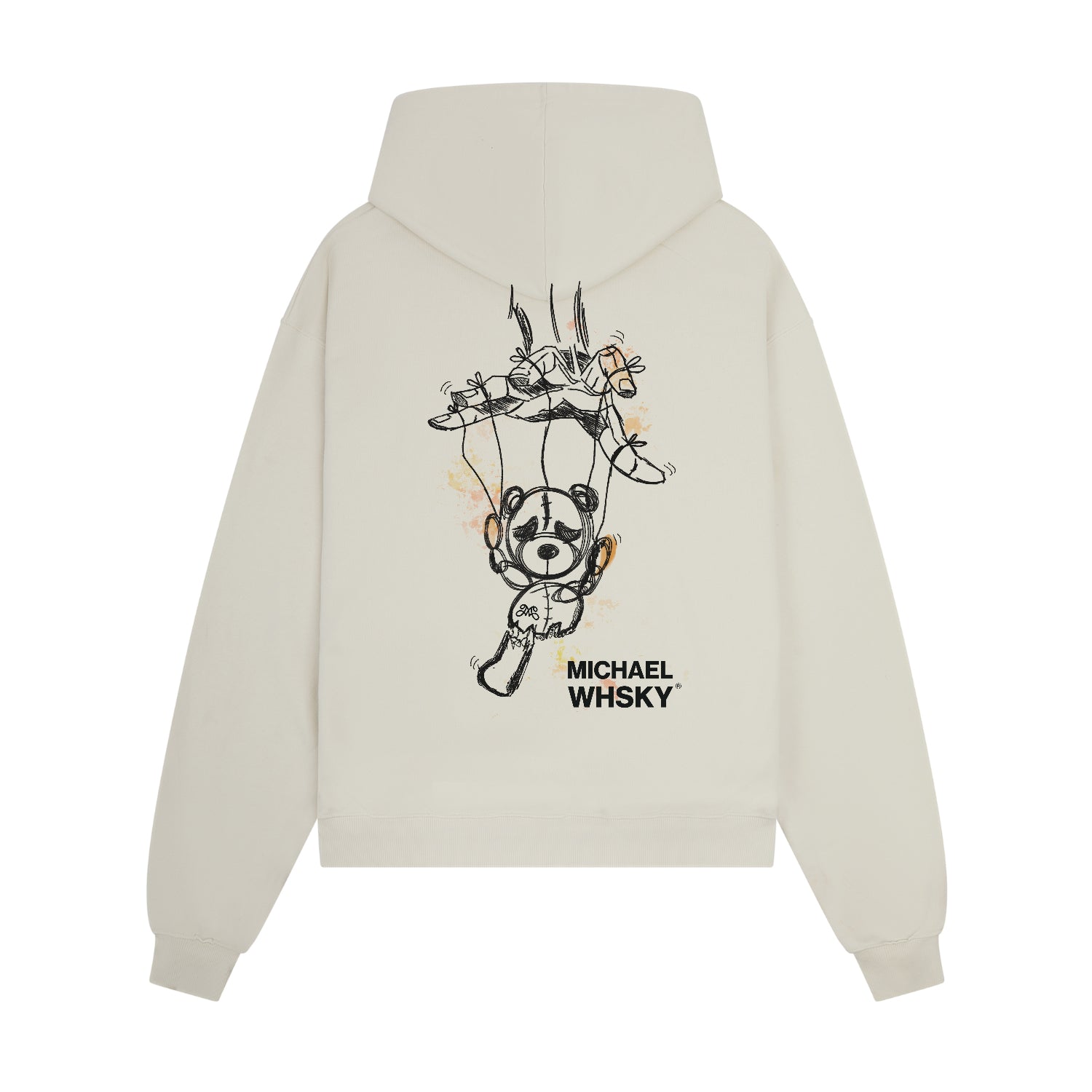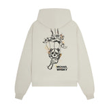 Introducing the Heavyweight Michael Whsky Puppet Teddy Hoodie in Ecru, a modern essential with elevated comfort. Crafted from heavyweight jersey cotton, this slightly oversized hoodie is pre shrunk with a lasting finish and ultra soft feel. Designed with ribbed cuffs and hem for a structured fit, it's finished with Michael Whsky's signature artwork.
