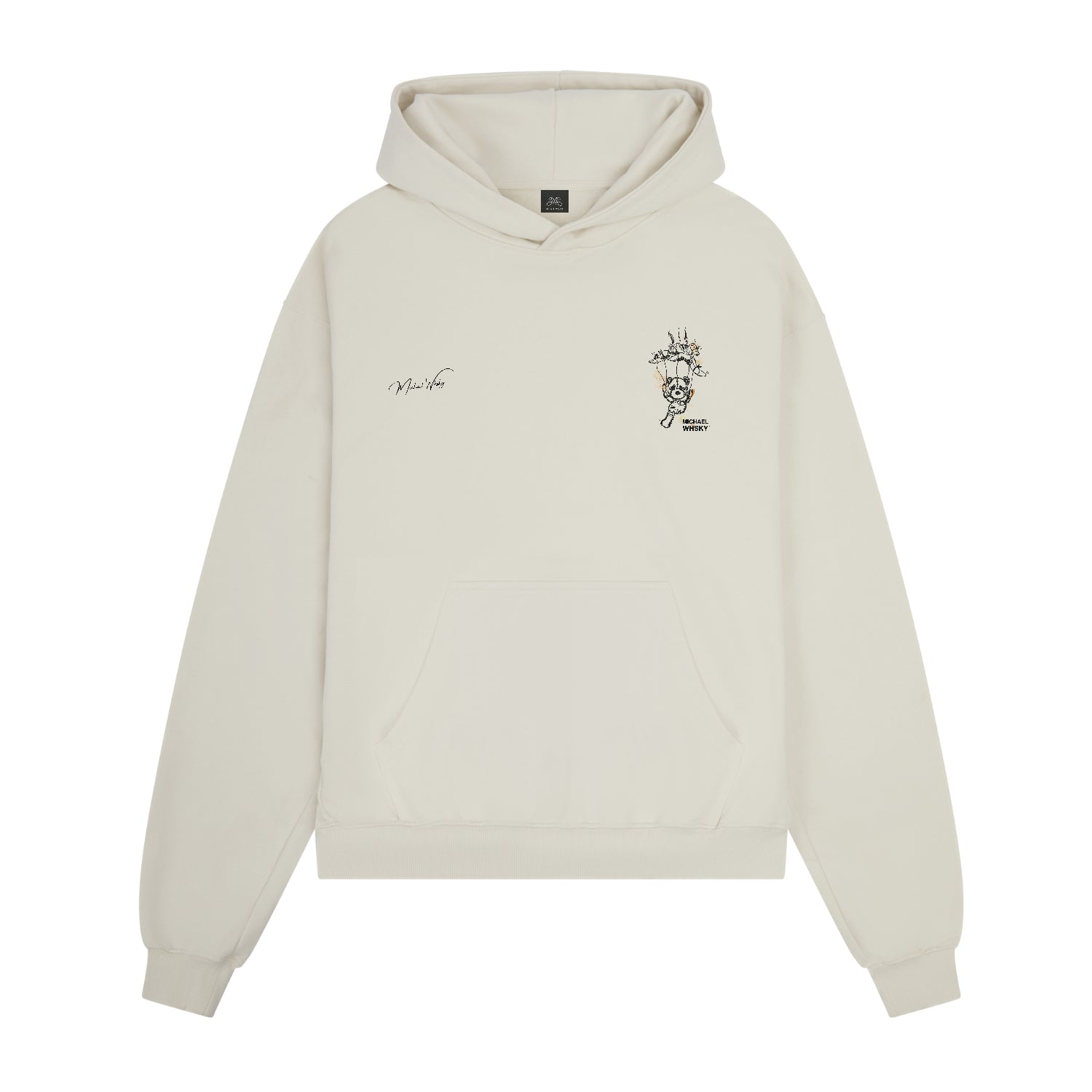This hoodie features Michael Whsky’s signature oversized fit, designed to fall wide and boxy.