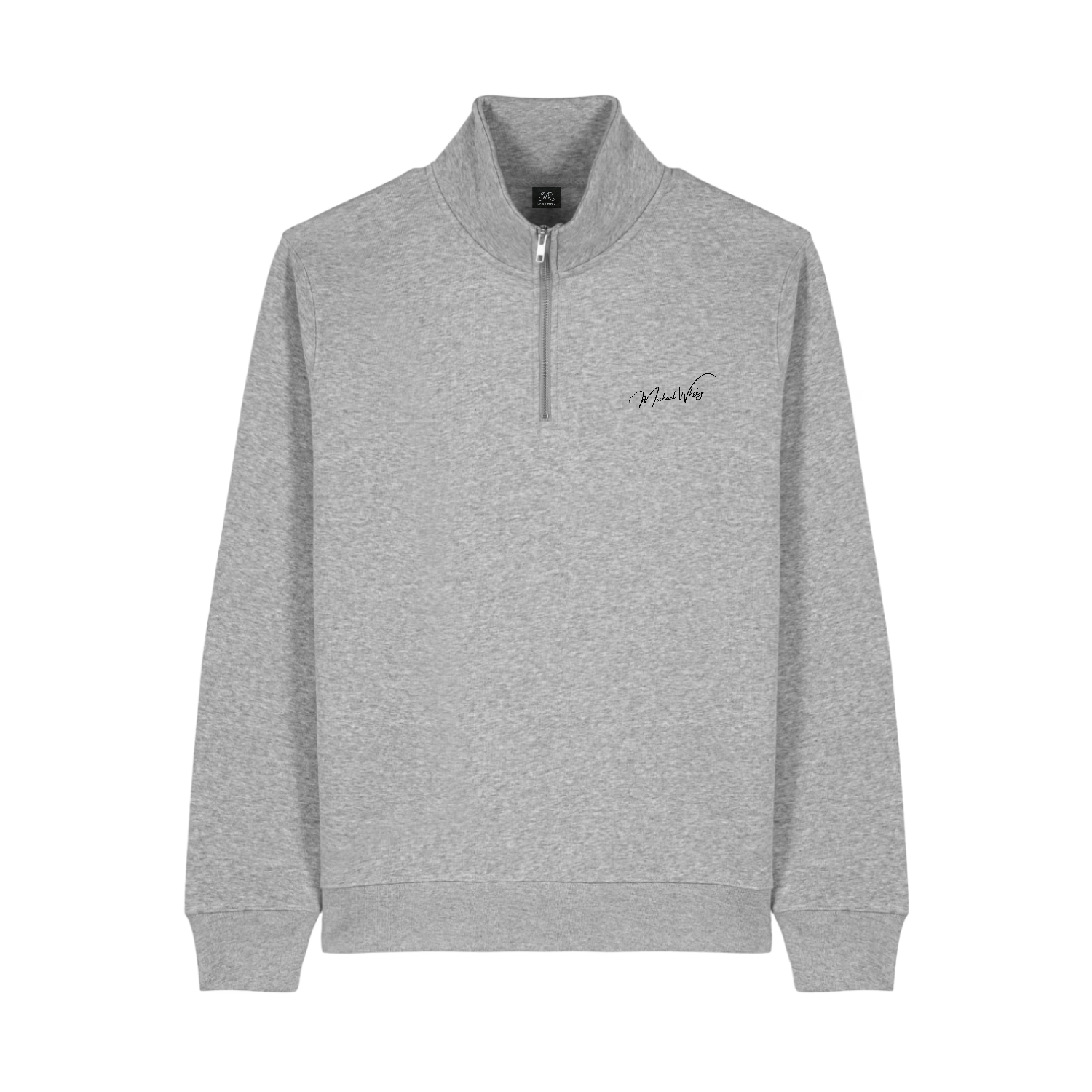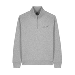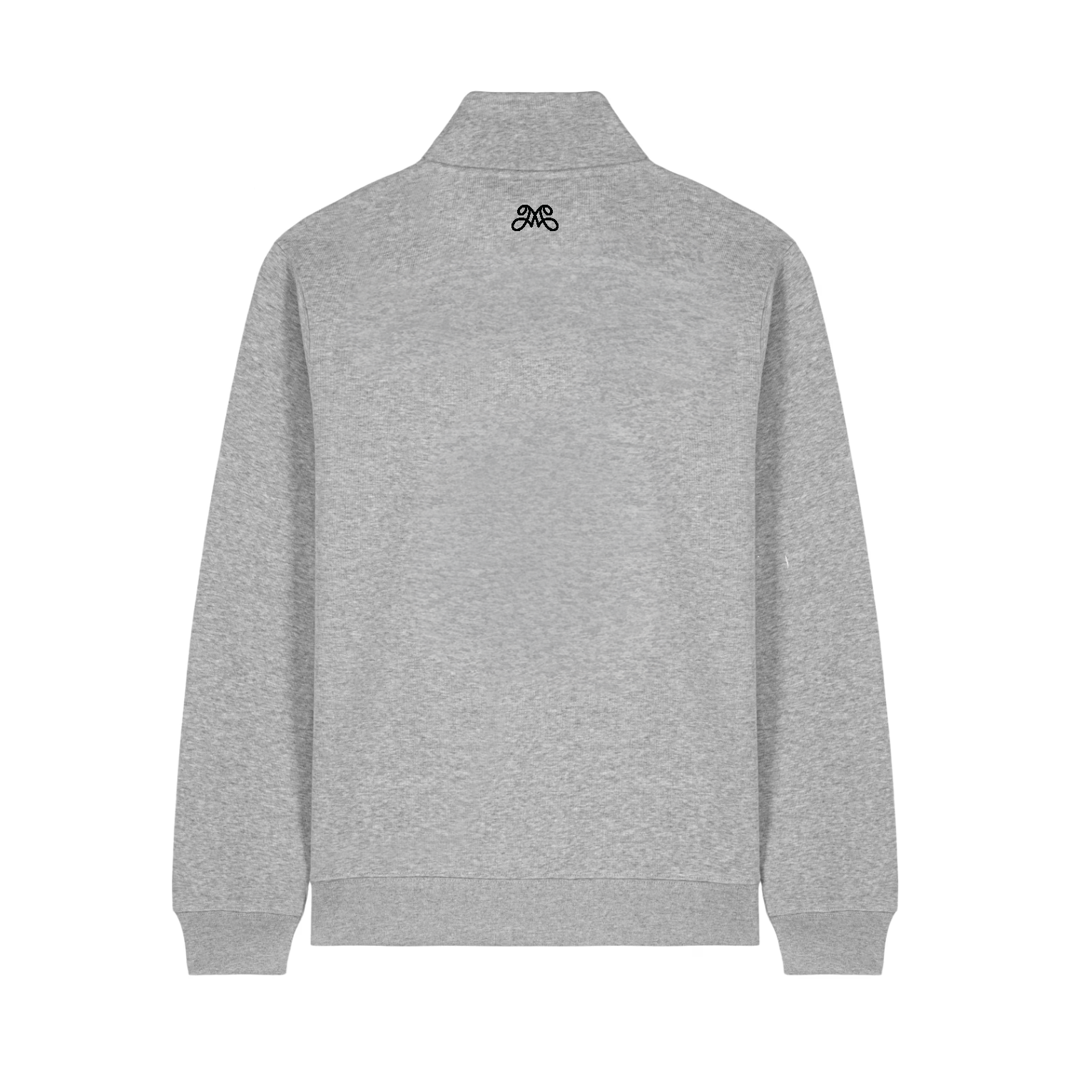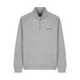 Introducing the Minimal Signature Half Zip Sweat in heather grey. Relaxed fit crafted from mid-heavyweight 350gsm 80% cotton and 20% recycled polyester anti-pill fleece. Soft fleece inside provides a cozy, warm touch.