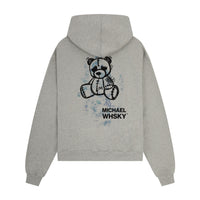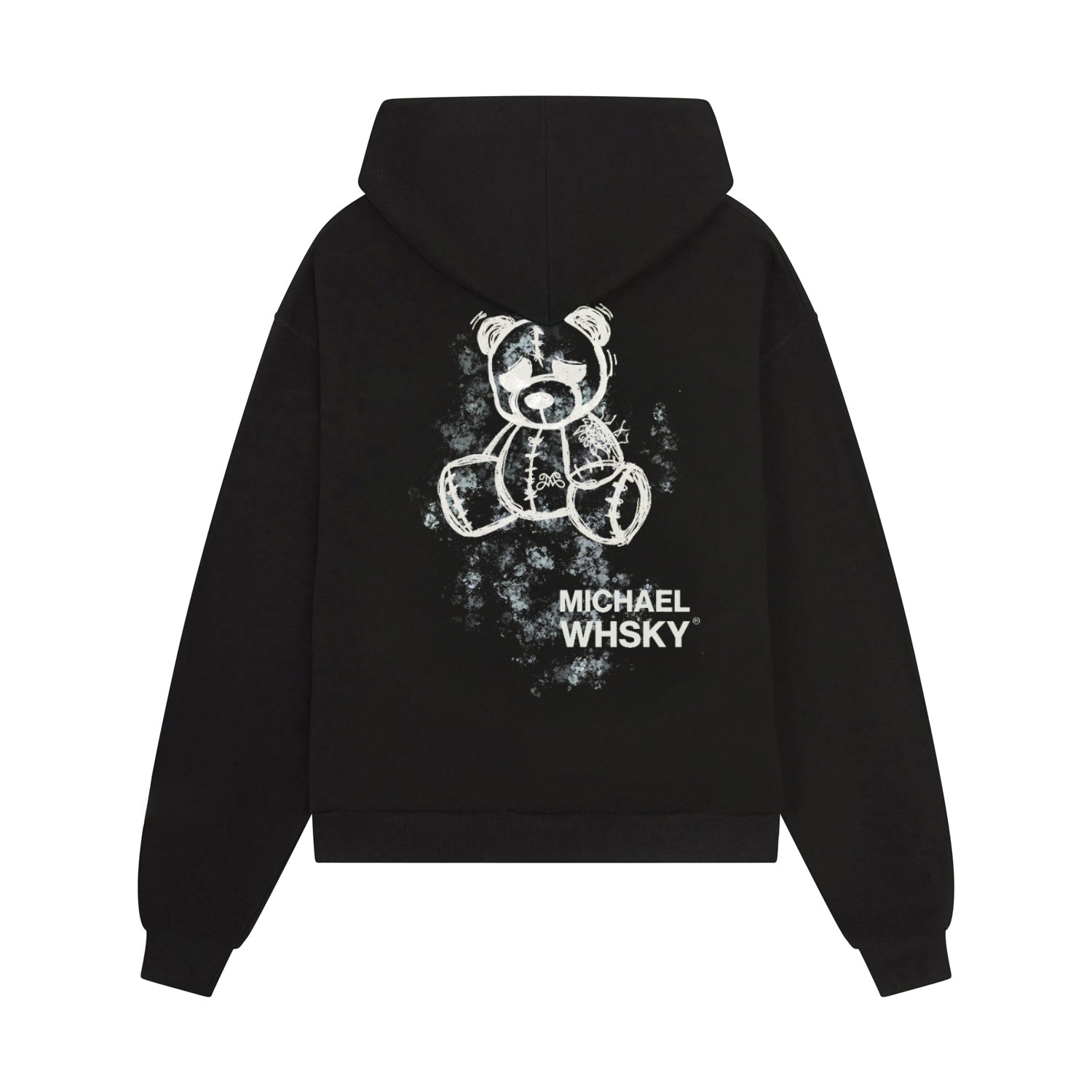 The Heavyweight Michael Whsky Teddy Hoodie in Black, a modern essential with elevated comfort. Crafted from heavyweight jersey cotton, this slightly oversized hoodie is pre shrunk with a lasting finish and ultra soft feel. Designed with ribbed cuffs and hem for a structured fit, it's finished with Michael Whsky's signature artwork.