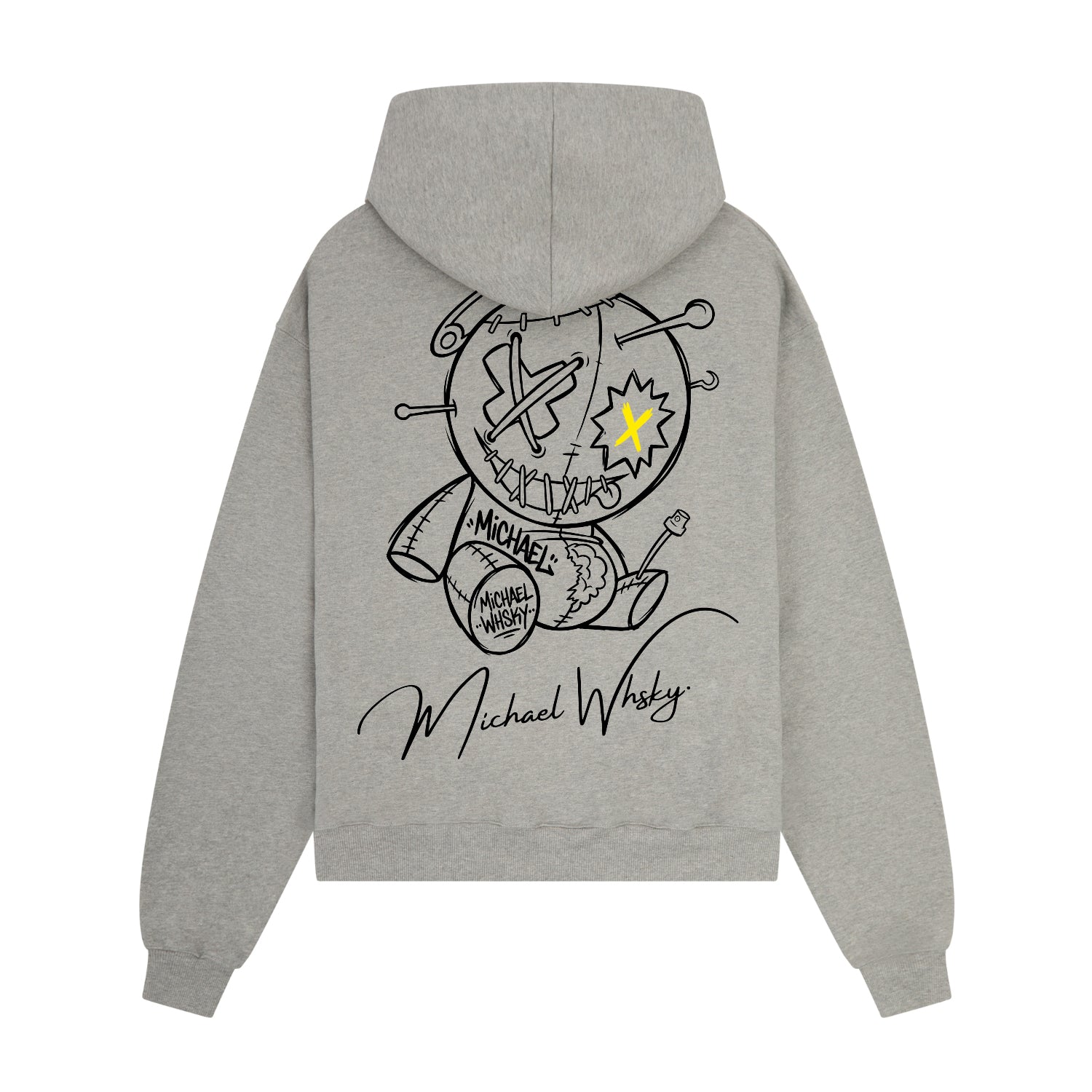 This hoodie features Michael Whsky’s signature oversized fit, designed to fall wide and boxy.